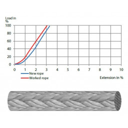 Diameter 8 mm. | Weight 49,2 g. per meter | Break Strength 5900 kg. | Spliced Break Strength 5300 kg. | Max. elongation at break 3.7%